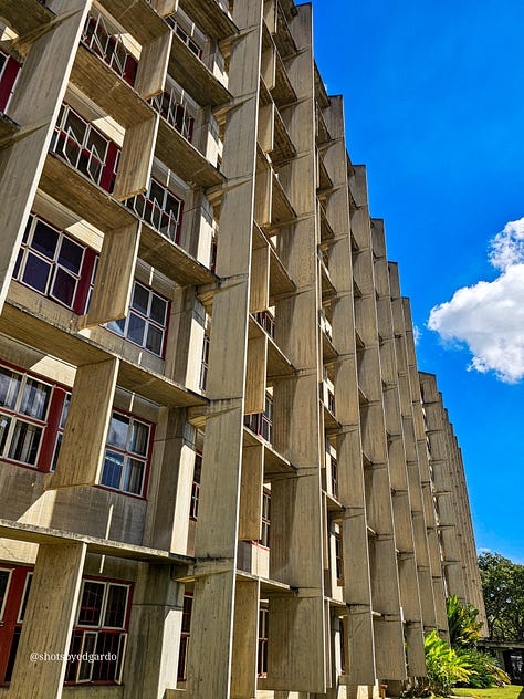 Edgardo Ibarra fotografió la Universidad Central Venezuela para mostrar esta tensión temporal. Un campus hecho hace años que se mantiene en lo moderno. Un foto ensayo que toma edificios y los transforma en historia.