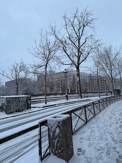 Mariana Anaya empuja el foto ensayo a una nueva frontera esta semana. Usualmente, trabajamos de las fotos al texto, con un autor contando la historia de lo que capturó su cámara. Esta vez, Anaya hace lo inverso. Sus imágenes, por sí solas, contarían la dicha de una nevada parisina; de niños jugando en la nieve. Sus palabras lo cambian por completo. Es la historia de quienes ven la nieve no como la diversión momentánea, sino como una realidad ineludible. La de vagabundos que no tienen otro espacio que la calle parisina cubierta de nieve y plagada de frío.