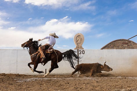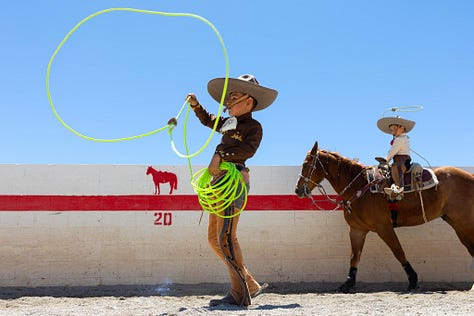 Ana Joaquina fue a Estados Unidos para encontrar un fragmento de México. Para ser precisos, el de la charrería. Misma que decenas de mexicanos han llevado consigo al otro lado del muro—ese del que escribe Millet en esta misma edición del 3,2,1—. Ahí, donde domina el futbol americano y el beisbol, ahora hay, también, un lienzo charro.