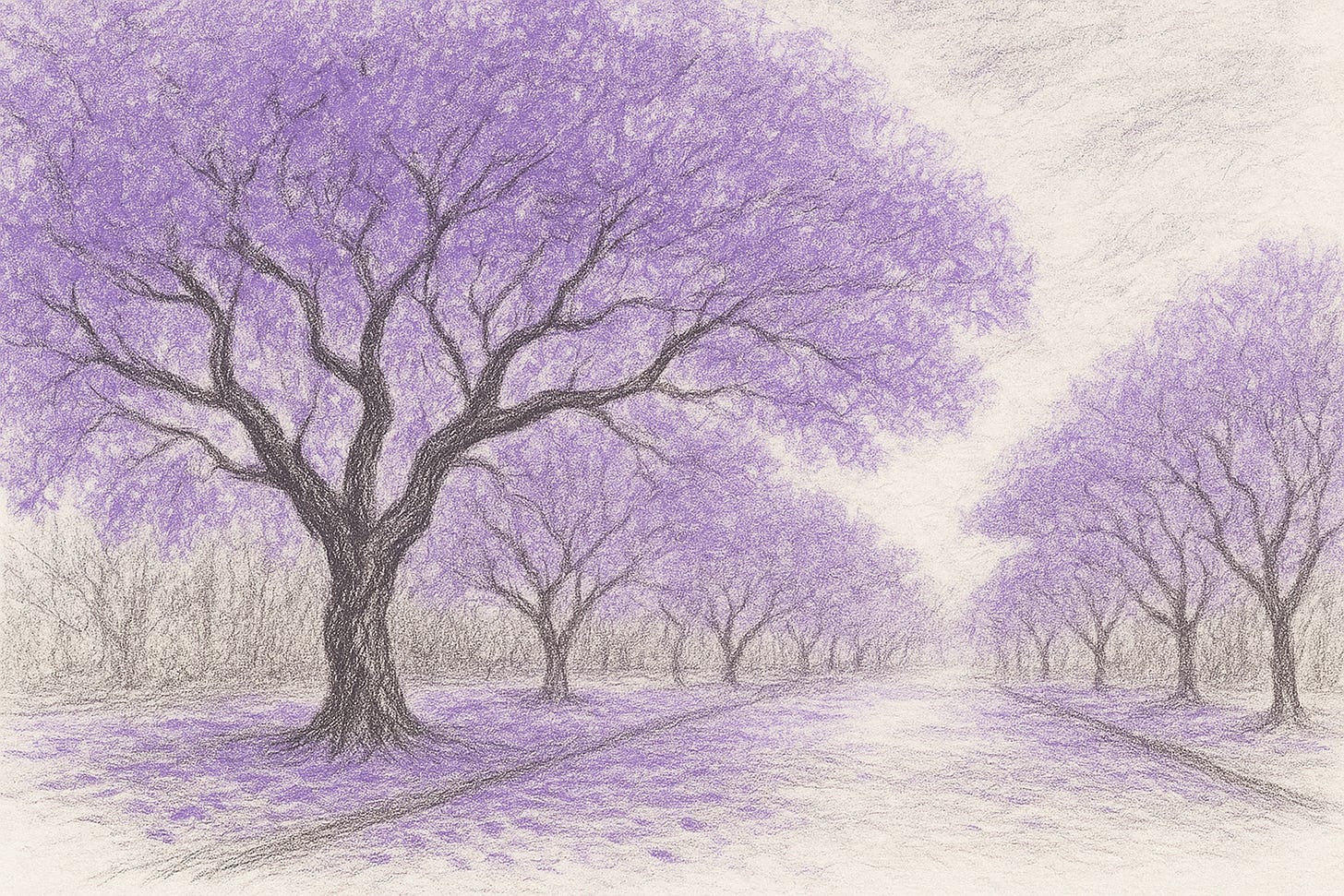 Nota del editor: Alguna vez escribí que la poesía es el arte de lo breve; de decir mucho en poco. Una de las avenidas para ello es la creación lingüística que solo puedo llamar como obvia; el encontrar palabras que siempre—SIEMPRE—hemos necesitamos, al grado que, sin tenerlas en un diccionario, se entienden a la perfección. Para cualquiera que haya vivido el purpureo florecer de las jacarandas, este poema de Valles tiene tal propiedad. Para los que no, pueden pensar en sinónimos tan hermosos como cerezar, guayacanear o, el menos apreciado, pero siempre útil, flamboyanear.
