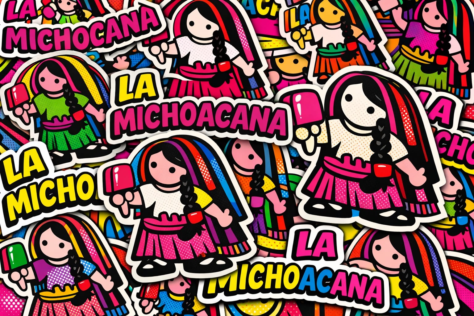 La primera vez que me senté a comer una paleta de tamarindo en una Michoacana pensé: esto sabe igual en todas partes. Rosa el toldo, rosa la muñequita, rosa la nostalgia. Para quienes no viven en México, “La Michoacana” es más que una heladería: es una institución popular. Venden paletas heladas, nieves y antojitos con fruta natural. Las hay en cada barrio, cada pueblo, en cada esquina del país. Su sello visual es infalible: una niña con trenzas, un sombrero tradicional michoacano y un menú colorido que promete sabores de mango, limón, chamoy, rompope o galleta.