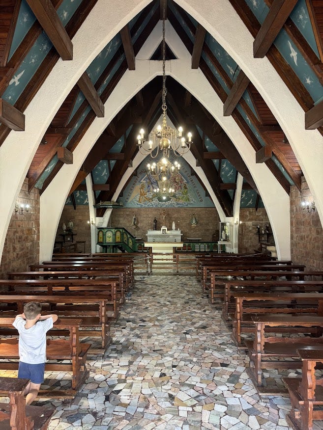 Lo mismo pasaba con el púlpito o los bancos para los creyentes. Su escala diminuta—o acorde a estos dominios, según como se vea—hacía parecer a cualquier adulto un Gulliver del Plata en tierras liliputienses. Claro que yo no había naufragado en ese lugar, sino que mi visita era totalmente intencional.