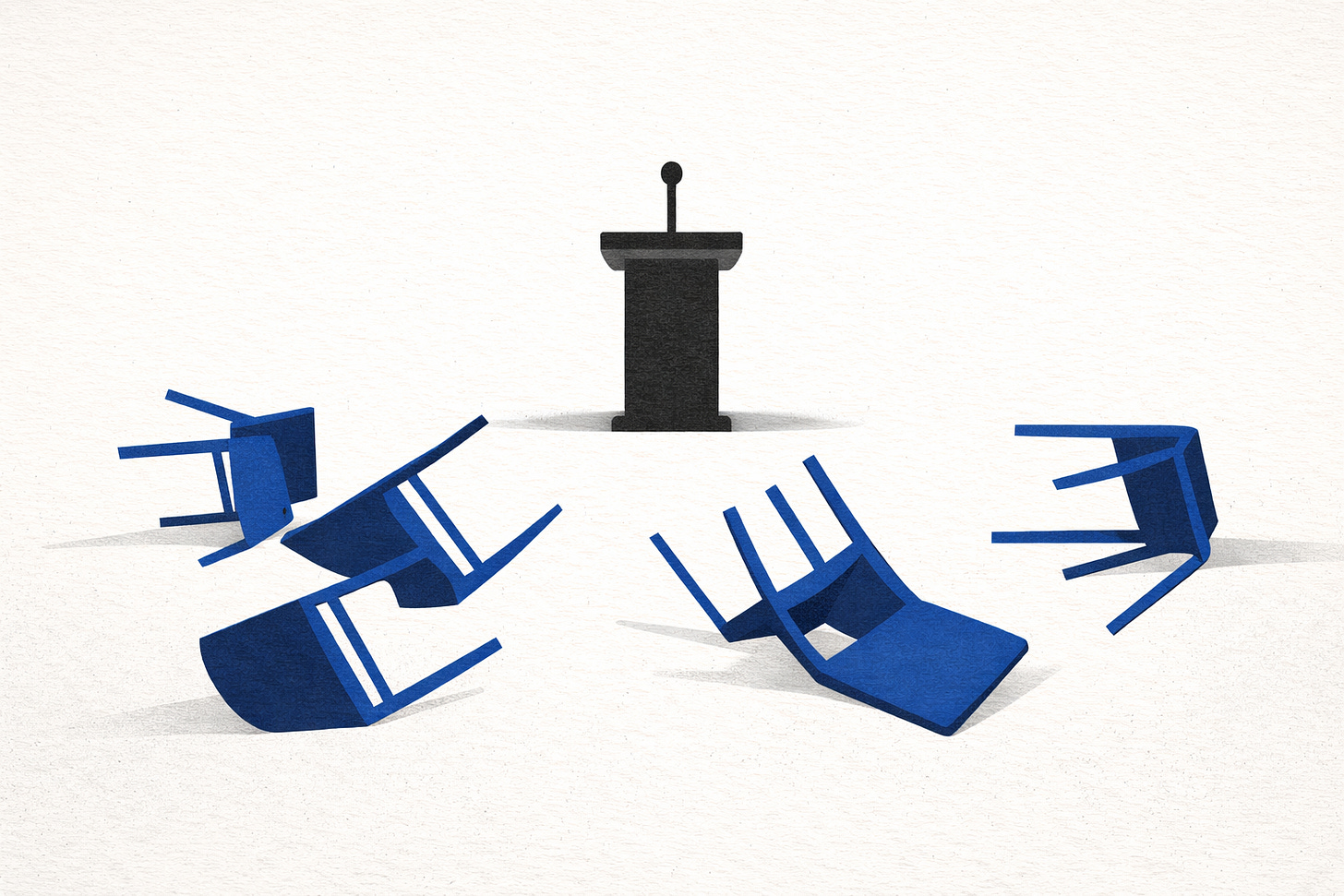 Volaron encendedores y biromes. Algunos arrojaron las carpetas. Un alumno astuto se interpuso en la puerta y no lo dejó salir del aula. El bochorno fue generalizado. Por poco no lo linchan a Becker, que se puso pálido y no tuvo ninguna capacidad para reaccionar. Por los ruidos, llegaron los responsables de organizar las jornadas y trataron de poner orden, pero fue en vano. Nadie escuchaba, todos gritaban. Luego de unos cinco minutos, la situación se normalizó. Becker seguía parado cerca de la puerta, bien custodiado por los organizadores.