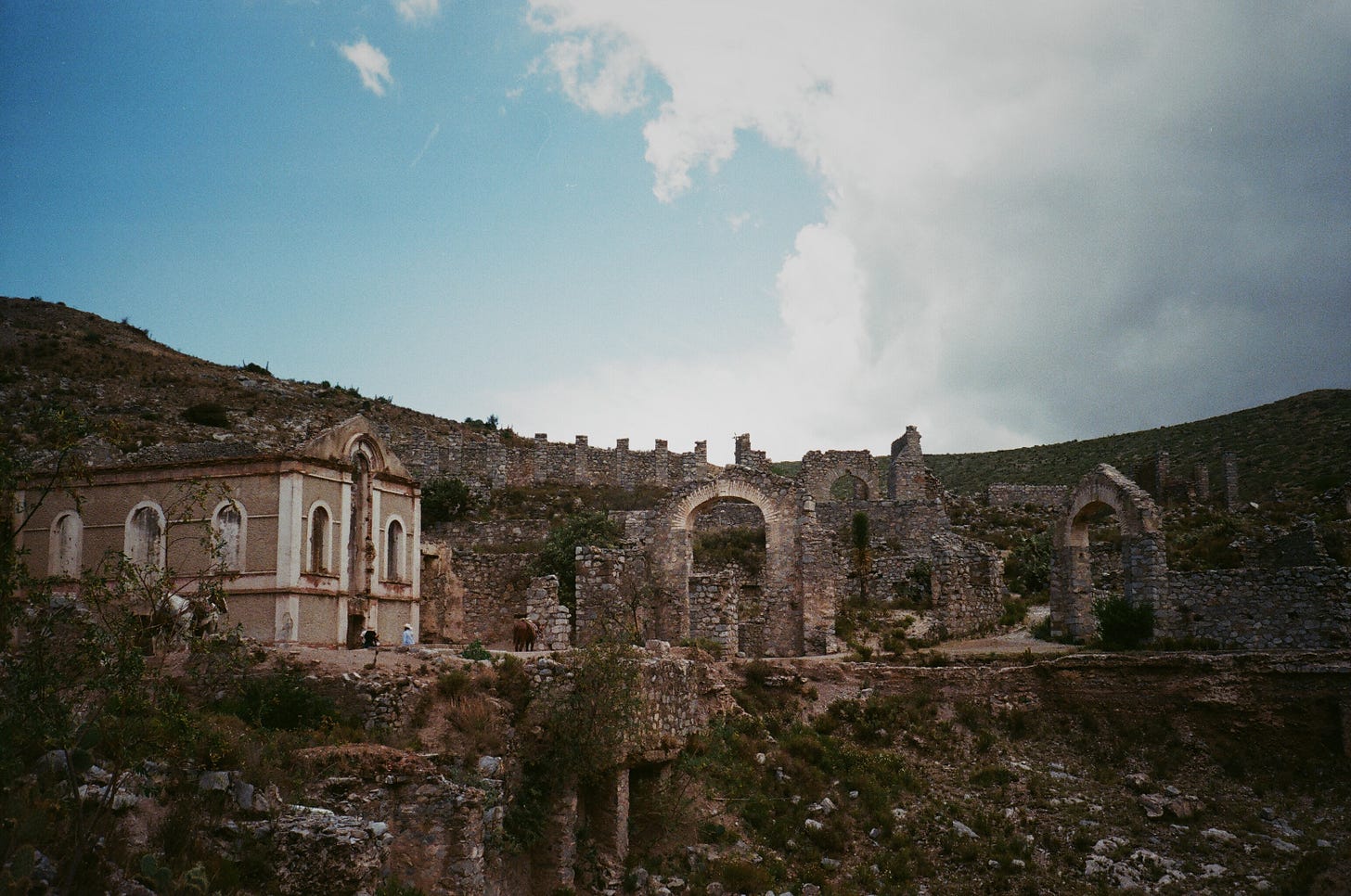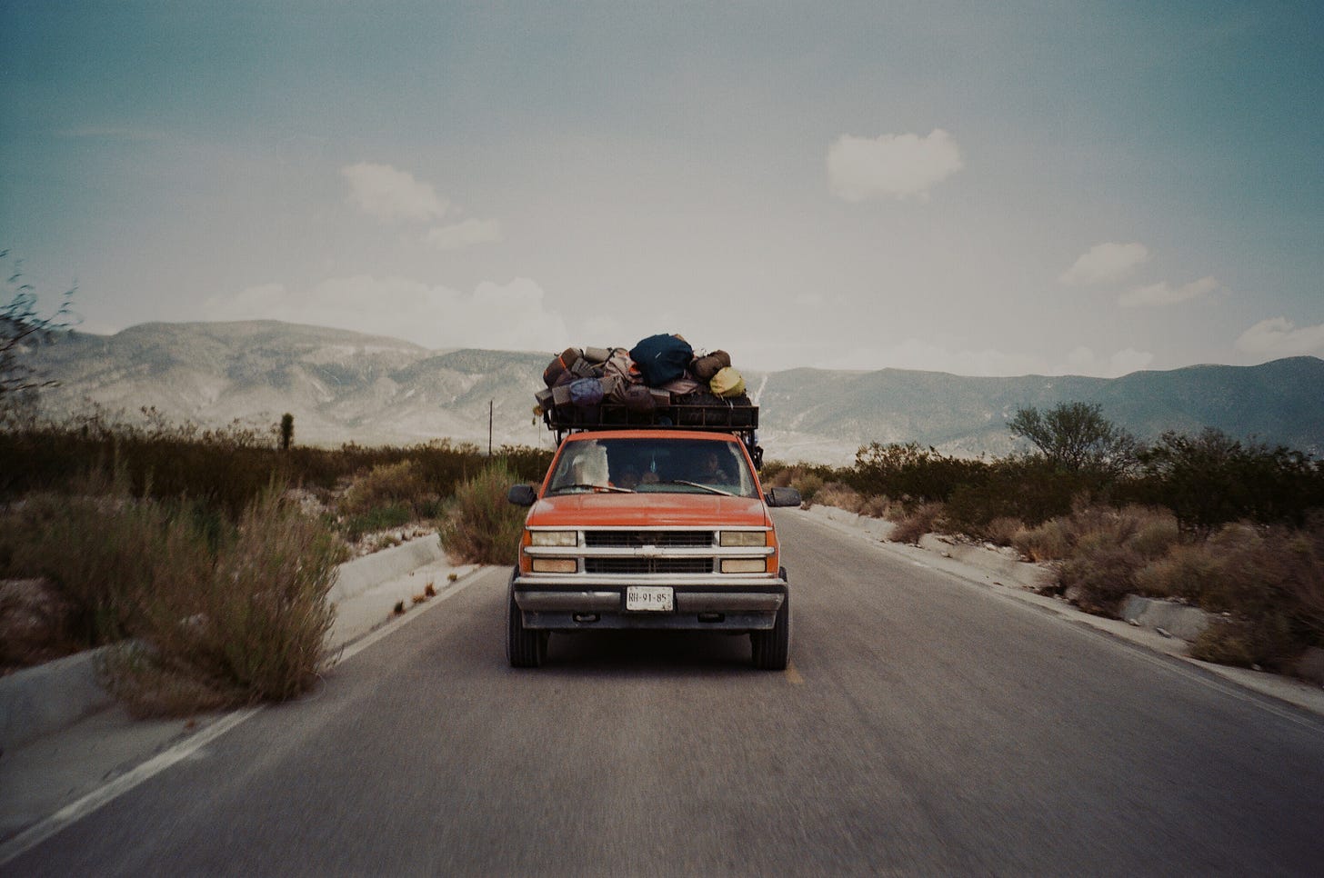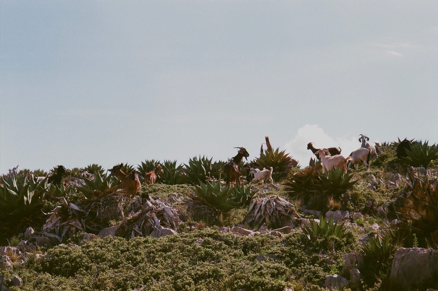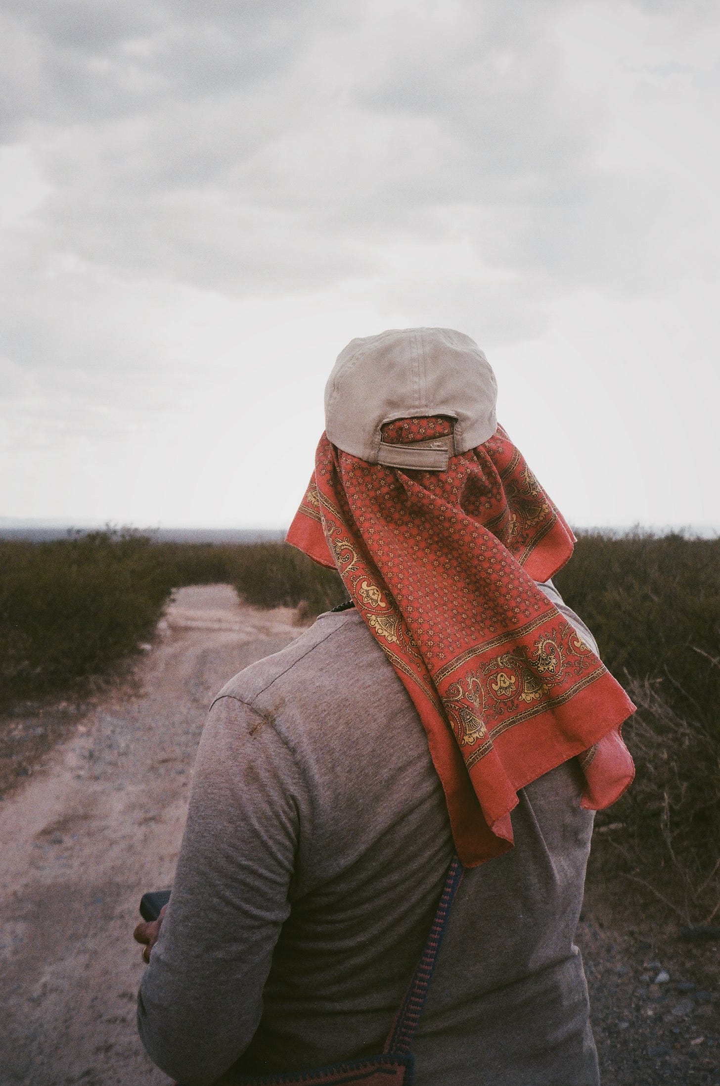 Otra coincidencia: mi interlocutora, al contarme la historia, defendió con el mismo fervor que me caracteriza la fotografía análoga,y me explicó por qué había optado por este formato específicamente para la ruta Wirikuta. Coincidimos en que la fotografía análoga es una imagen superior. Es la profundidad ontológica del mecanismo que captura un instante. En lugar de convertir la luz en una serie numérica, transforma un momento en reacción química. En las fotografías de Valentina, los colores del desierto de San Luis Potosí no se tocan ni se comprimen: conviven, cada uno en su profundidad; la intensidad del instante que vivió se palpa en lo impredecible y eterno del grano, en oposición al píxel y su perfecta forma y predictibilidad.