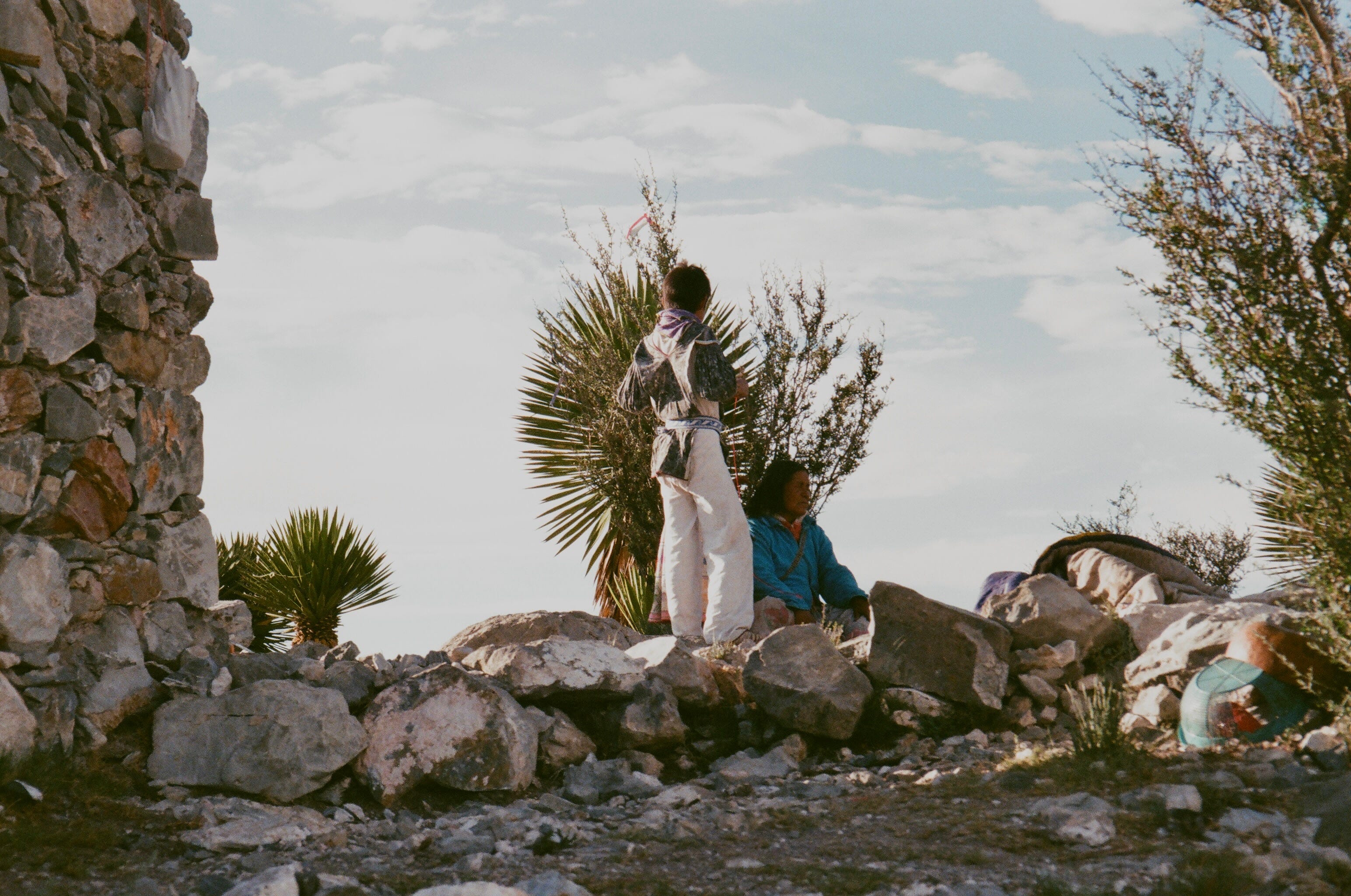 Para mí, la fotografía analógica es una imagen viva. Está compuesta por ese ruido, ese grano que le da cuerpo y la hace respirar. Fotografiar en analógico me ayuda a conectar de manera más profunda con el espacio; los verdes se vuelven más vivos, los azules más profundos. Creo que la fotografía debe sentirse tanto como vivirse; cada captura es un momento exacto en el que decides detenerte y registrar una forma de vida que está ocurriendo frente a ti. Estas fotografías son fragmentos de mi camino sagrado por Wirikuta. Capturan no sólo la esencia del desierto, sino también la presencia de la cultura wixárika (huichol), su relación con la tierra y la luz que habita en ese territorio donde nace la luz.
