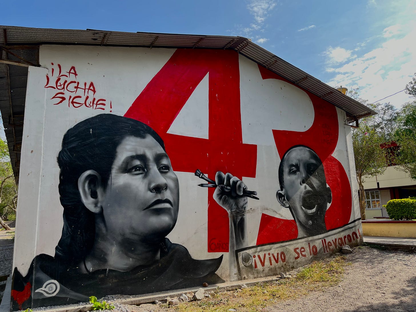 Durante mi visita, recorrí la normal rural, conversé con padres y estudiantes, y escuché sus ideales profundamente revolucionarios. Es una escuela llena de vida: de colores, de murales, de convicciones. Un lugar donde la nobleza de los estudiantes es verdaderamente conmovedora. Jóvenes —muchos de ellos con menos de veinte años— dejan los hogares de sus familias para formarse como los futuros maestros de sus comunidades, con la esperanza de llevar una educación digna a las regiones más olvidadas del país.