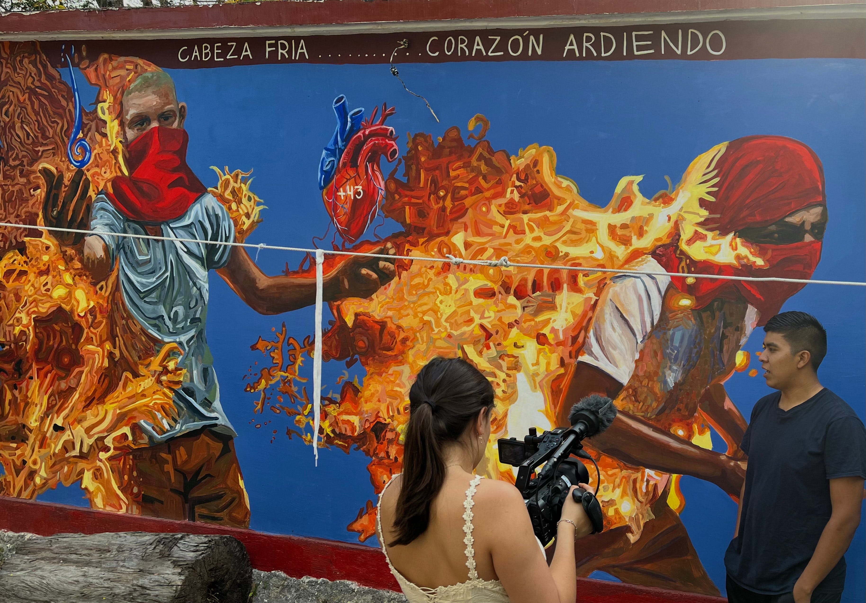 Al entrar en la escuela de Ayotzinapa, Mónaco notó un contraste entre lo que presenciaba de primera mano en el lugar y la narrativa del gobierno y los medios nacionales en torno al caso: