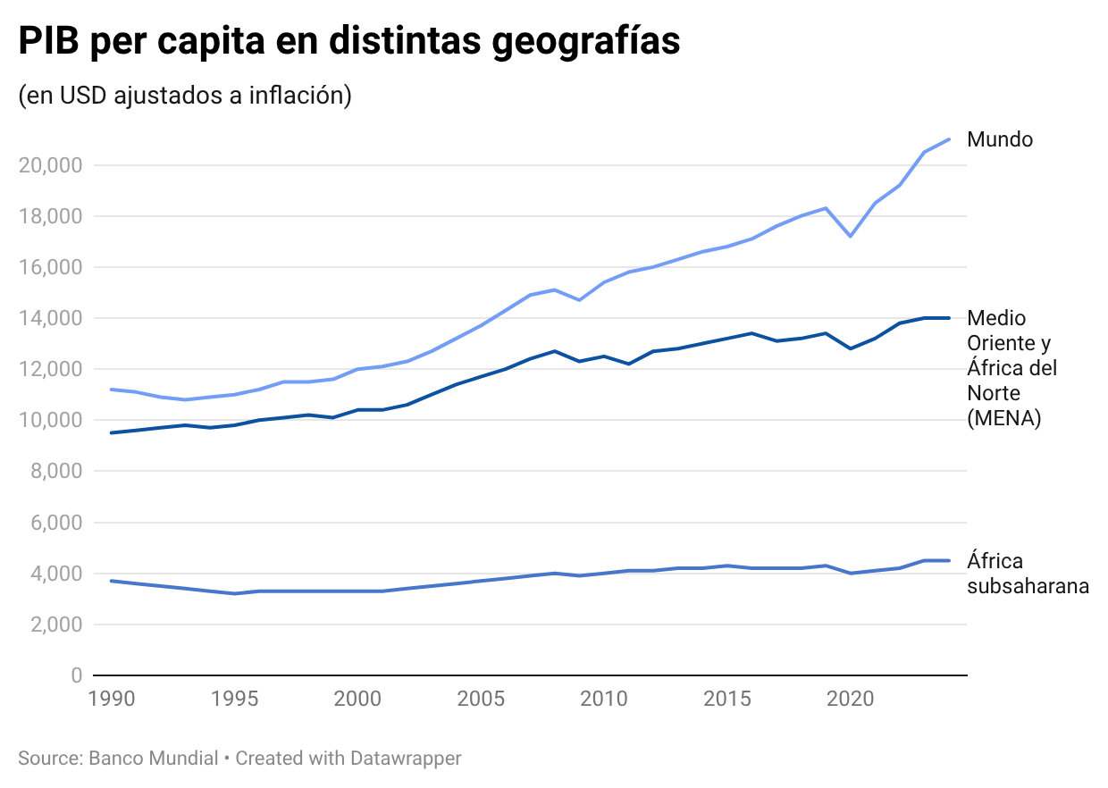 Las horas trabajadas en países europeos eran de más de 3,000 a finales del siglo XIX; para estos principios del XXI, rondan por la mitad de eso. El porcentaje de menores que trabaja se ha ido reduciendo paulatinamente, con el progreso del siglo XX y del XXI; muchas veces es la mitad o la tercera parte de lo que era. El ingreso promedio de un ciudadano del mundo, en la última mitad de siglo—en solo cincuenta años de una especie que lleva milenios se ha duplicado—. Aún si vemos a África por sí sola, la región más pobre de este, nuestro planeta, ha crecido un 29% para la África Subsahariana y un 55% para los países de África del Norte y Medio Oriente—. Ahí mi argumento. Las cosas han mejorado para la persona promedio aún si, el individuo, puede seguir sufriendo. No hay una clase homogénea proletaria; hay matices.