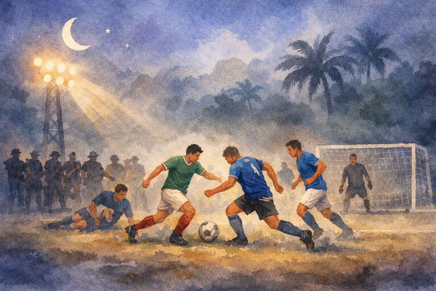 El último partido nos tocó contra los profesionales guatemaltecos. Habíamos ganado uno y empatado uno, y ellos tenían un récord exactamente igual. Era como una final. Yo seguía preocupado por nuestra vida y por la de los rivales, hasta que los jugadores de primera, impresionados por la escena del árbitro, se acercaron a nosotros antes del saque inicial. Pinches mexicanos hasta en estos torneos los ayudan; Así como son culeros de ese lado del río, vamos a ser unos mierdas con ustedes por acá; Con nosotros sí se van a ir a la verga, pisados.