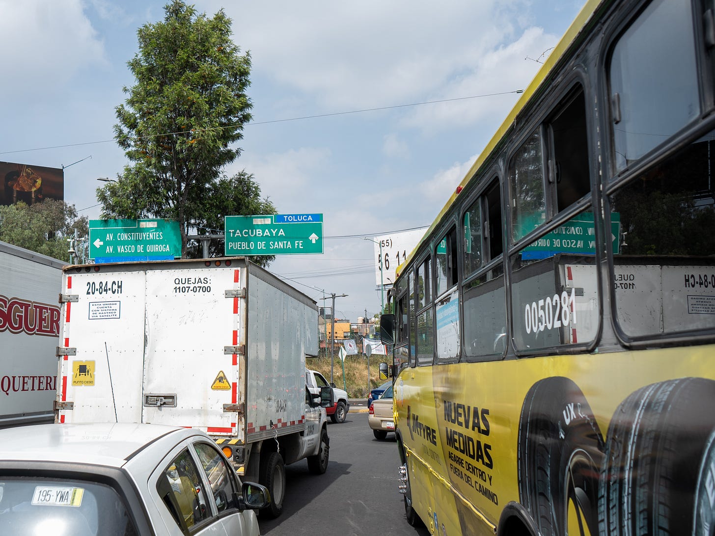 El costo de usarla refleja una desigualdad profunda. En 2025, recorrer sus 8 kilómetros cuesta $310 pesos en un solo sentido—es decir, unos 14 dólares—. Un trabajador con salario mínimo, que gana alrededor de $1,950 pesos a la semana, tendría que gastar el 36% de su ingreso solo para ir y volver a diario. La paradoja es brutal: mientras algunos flotan sobre el tráfico en una autopista de cuota, la gran mayoría queda atrapada en calles secundarias que se congestionan todavía más por el diseño excluyente de la vía rápida. ¿Qué ocasiona esto? Alguien que llega a Santa Fe para realizar trabajos de prestigio goza de movilidad facilitada. Sus trayectos en el tráfico son minimizados, lo cual los deja con tiempo de sobra para dedicar a actividades de ocio, familiares y demás. La realidad es otra para los trabajadores que llegan a Santa Fe a realizar trabajos informales: usuarios del RTP (transporte público), comparten que “si bien nos va, nos toma unas dos horas diarias llegar.” Muchos salen de su casa cerca de las cinco de la mañana para llegar a tiempo y el regreso es lo mismo. Aquí, el derecho a moverse depende del poder adquisitivo.