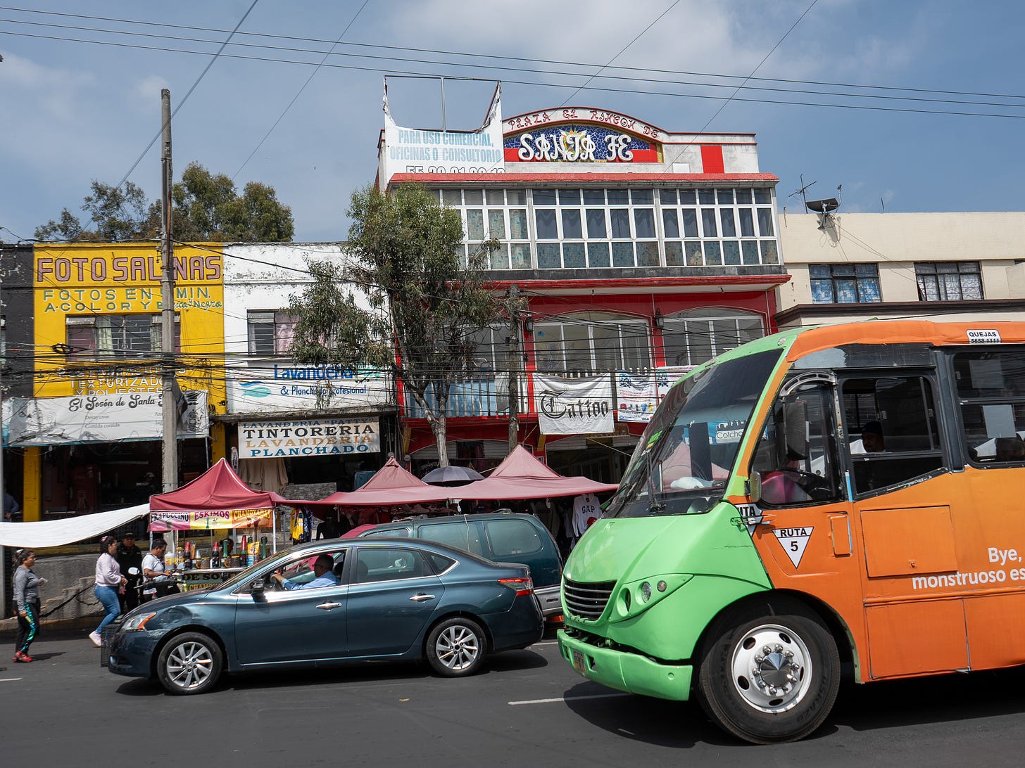 Para llegar a Santa Fe, cruzo un túnel que atraviesa una de las muchas montañas que lo rodean. Justo antes de la frontera que divide la ciudad de su estado vecino, este moderno hub financiero se levanta entre cañadas y laderas empinadas. Casi de la nada, el túnel me escupe en un distrito totalmente distinto del que vine. No es necesario leer el letrero que marca mi entrada. El tráfico, los edificios y los centros comerciales amontonados todos me dicen lo mismo: ya llegaste a Santa Fe.